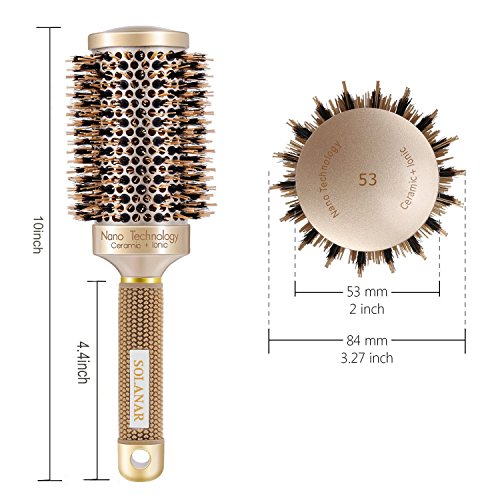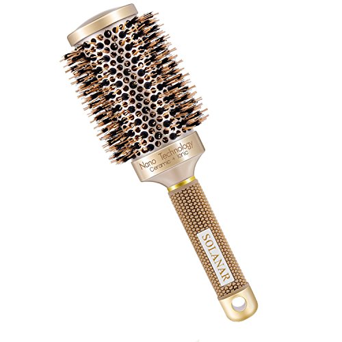 SOLANAR Nano Thermal Ceramic & lonic Round Barrel Hair Brush with Natural Boar Bristle, for Hair Drying, Styling, Curling, Adding Hair Volume and...
