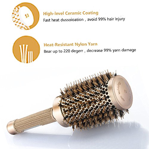 - ROUND BARREL HAIR BRUSH:Non-slip mattress handle to ensure handshake comfort, elastic nylon comb, tightly rolled easily hair, comb hair and strengthen hair root stretch, ceramic hot plate effective protection and transmission of heat.