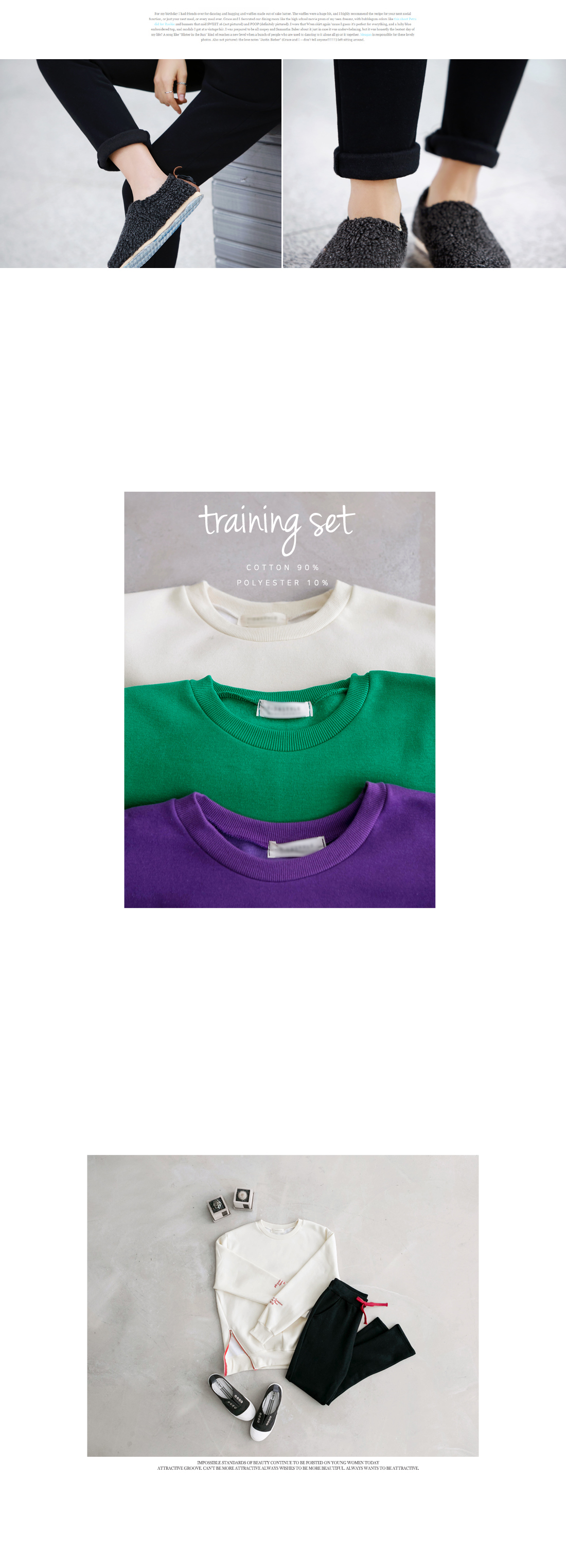 맨투맨 티셔츠와 밴딩팬츠로 구성된 트레이닝 세트 상품을 소개할께요