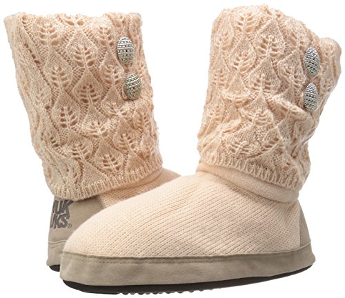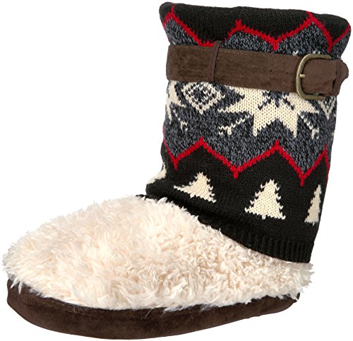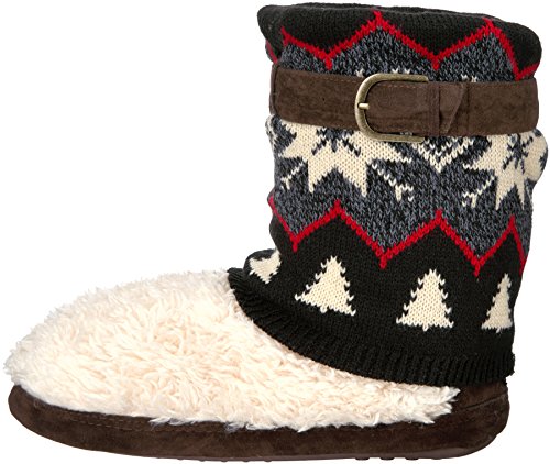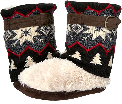 Studio : Muk Luks Publisher : Muk Luks Binding : Apparel Product Description Start off your cold weather days with our easy pull-on muk luks black sofia slipper. the sofia slipper stands out with an elegant knit cuff to add to your stylish lifestyle. sizes come in s (5-6), m (7-8), l (9-10), xl (11-12). spot clean and lay flat to dry. no bleach. no heel. imported. 0