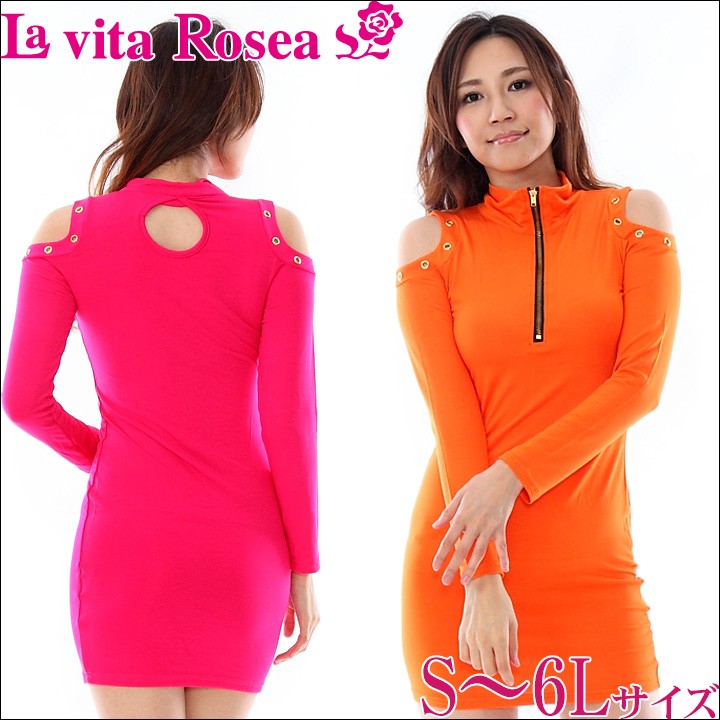 オープンショルダージップアップワンピース(SM) 大きいサイズ 春 セクシー レディース ギャル服 ギャル 大人 13号 15号 17号 19号 LL 2L 3L 4L 5L 6L 6L