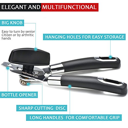 Portable Manual Can Opener, kitchen Bottle Cap Opener, High Strength Zinc Alloy Stainless Steel + PP Materials Non-slip Handle, Easy to Rotate Knob Safe Cutting Can Opener, 8.3 X 2.4 X 1.8 In (Black)
