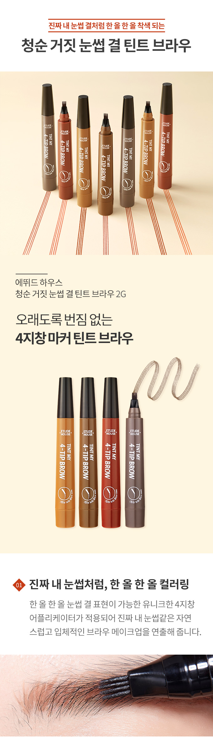 一本一本眉接続表現が可能なユニークな4窓アプリケーターが適用されて本当に私の眉毛のような自然で立体的なブラウザメイクを演出してくれます。