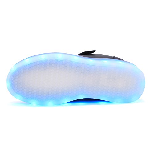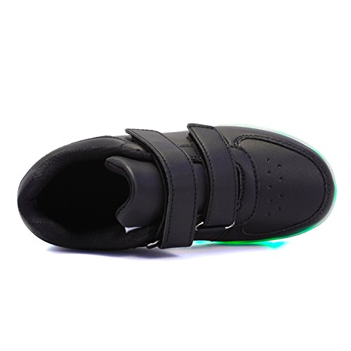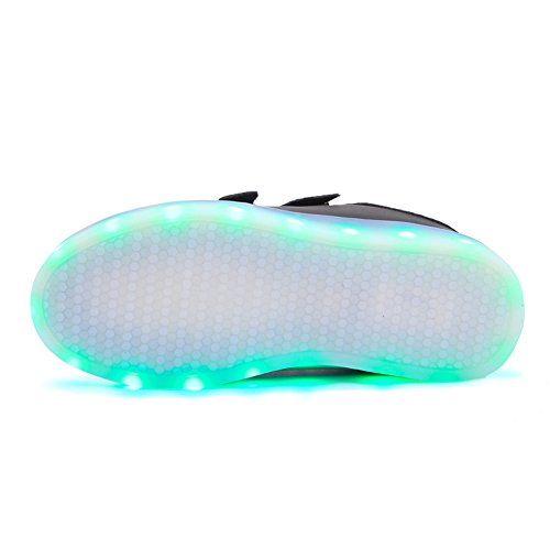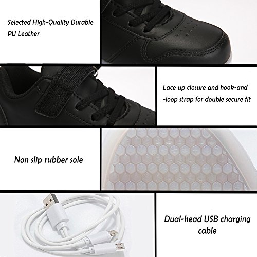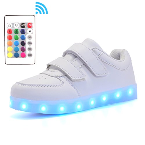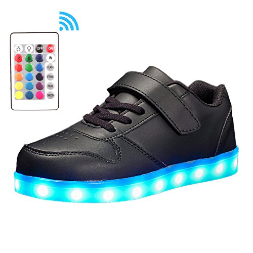 -. Feature : [EASY OPERATIONS]: The color changes every time you press on button on the shoe, 7 static colors and 4 dynamic colors. With the remote controller, static colors add up to 16! / [EASY RECHARGE]: Just plug the attached USB cable into a computer or a USB outlet adapter. 3 hrs of recharge could provide 7 hrs of lighting. / [SPECIAL FEATURES]: High-quality Material, Fine Stitching, Lace-up closure with fully-adjustable hook-and-loop strap for an extra secure fit. / [OCCASIONS]: Suitable for kids to wear every day, for birthday, celebrations, performances, cosplays, skateboarding, festivals, holidays, vacations, Christmas Day, Halloween, Thanksgiving Day. Ideal gifts for kids! / [NOTE]: Please refer to the size chart in the product description before purchase. Please do not running, jumping with the shoes on for protection of the lighting system.