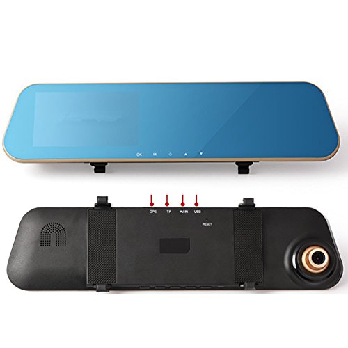 -. Feature : 2 in 1 rearview Design:The ultrathin blue anti-glare screen can replace your original rearview mirror with large dimension;Built in enhanced HD 4.3 inch LCD Screen in the left of the mirror for display / Dual Lense Record:Front lens:1080P high-resolution / Automatically ON/OFF:When connected with car charger, device will turn on when car starts, turn off and save the last video when car is powered off;Loop recording:the dvr will record files circularly without worrying the memory card being full(the locked files will not be covered) / G-sensor function:when accident happens,files will be saved by force and will not be covered by new record.Motion Detection:it records automatically without pressing any button if there is motion in the lens.This function is very useful to track your car's safety when you are not in it,also very power-saving / Package Included:HD machine+Genuine Kingston C10 high-speed TF card 16G (including two fixed straps, data cable, car charger cable + manual + warranty card)