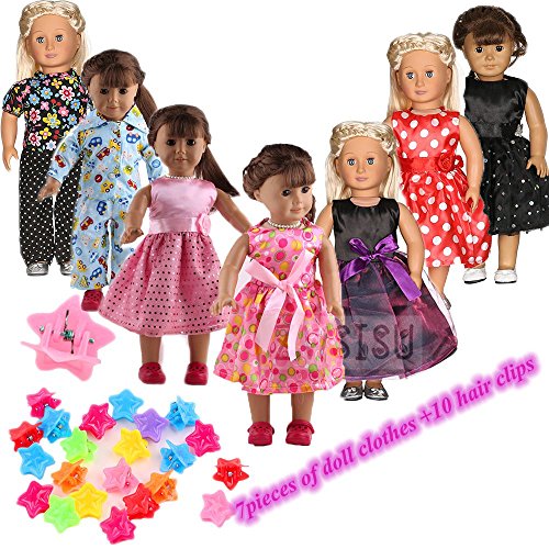 -. Title : ZWSISU Super Value 7pcs 18inch American Girl Doll Clothes and 10pcdoll hair clips Fits American Girl Doll, Our Generation, Journey Girls Dolls