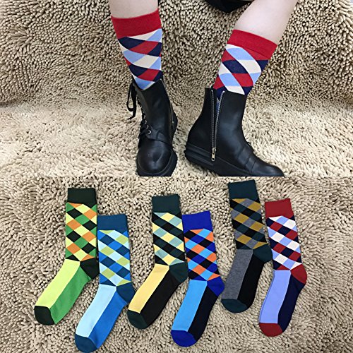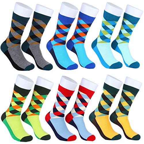 -. Binding : Apparel -. Brand : Hotnew socks -. Department : mens -. Feature : HIGH QUALITY COTTON SOCKS - Men socks are made of 90% cotton10% polyester Comfortable, lightweight, wearable and sweat-wicking. Soft and gentle for your skin, always give you fine care and company both for indoor and outdoor activity. / ONE SIZE FITS MOST - Our men socks are suitable for US men shoe sizes 6 to 11. They are elastic and perfectly make it suitable for your feet. High quality cotton crew socks, colorful fashion casual style HeatGear fabric wicks sweat away from your skin to keep your foot cool and dry. / COLORFUL AND SPECIAL DESIGN - Argyle Bright and Colorful: Design unique colors and Argyle patterns,look cool and vibrant.People will enjoy asking about your socks! Whenever You wear these you always get compliments / SUPER SOFT AND COMFORTABLE - These casual socks are applicable to many occasions - Casual, Wear to Work, Sports, boot, hiking, running, exercise etc. No need to worry about deformation or fading. It's great to hand wash or machine wash, and hang air dry. / A GREAT GIFT - Perfect Gifts Pack for Father's Day, Christmas, Thanksgiving, or Birthday gifts. Whether you're in the office or at party, these socks are fun and trendy -. ProductGroup : Apparel -. ProductTypeName : SOCKSHOSIERY -. Size : One Size -. Title : 6 Pack Mens Funny Dress Socks - Colorful Argyle Patterned Rainbow High Fun Fashion Casual Crew Sock, Multicolors,One Size