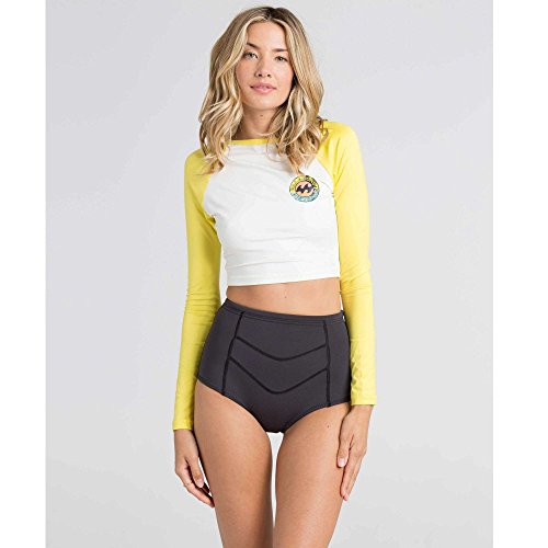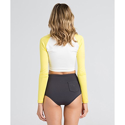 Surf daze solid blocked long sleeve cropped rash guard with small retro logo chest hit, UPF 50.