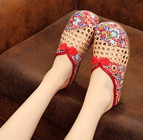 Product Description The totem pattern can attract directly a lot of attention form others and show out your distinctive points. Classic handmade can ensure your comfortable wearing experience in any time and any occasions. Breathable mesh shoe is designed for you in this hot summer to show out your beautiful feet and your glamour. Closed-toe sandal and soft sole will keep your feet protected. It is Easy to recover from the squeeze with a certain rigidity and elasticity. Soft and flexible sole is suitable for all activities. Anti-collision design protects feet from rocks and other hard objects. Dichotomanthes bottom and its thick-heeled sole can change your image and improve yourselves. With the fabric and the stitches made by professional hands, has a lovely and delicate look plus considerable strength for holding stuffed objects during long-term use. Reliable quality. It is made of high quality materials, durable enough for your daily wearing. Unique style and new fashion, make you beautiful, fashionable, sexy and elegant. Left pattern design makes you cuter and more attractive.
