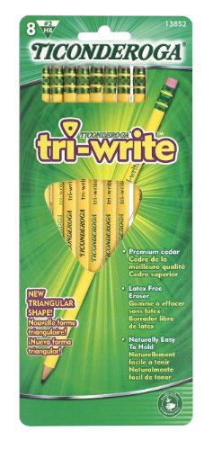 Dixon Ticonderoga Tri-Write Triangular Standard Size #2 Pencils, Set of 8, Yellow (13852)
