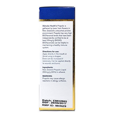 -. Binding : Health and Beauty -. Feature : Manuka Health BIO 30 Propolis Tincture 25ml Alcohol Based 100% Pure New Zealand Bee Propolis Antioxidant Immune Support (Pack of 2) -. IsAdultProduct : 0 -. Label : Manuka Health -. Manufacturer : Manuka Health -. PackageQuantity : 2 -. ProductGroup : Health and Beauty -. ProductTypeName : HEALTH_PERSONAL_CARE -. Publisher : Manuka Health -. Studio : Manuka Health -. Title : Manuka Health BIO 30 Propolis Tincture 25ml Alcohol Based 100% Pure New Zealand Bee Propolis Antioxidant Immune Support (Pack of 2)
