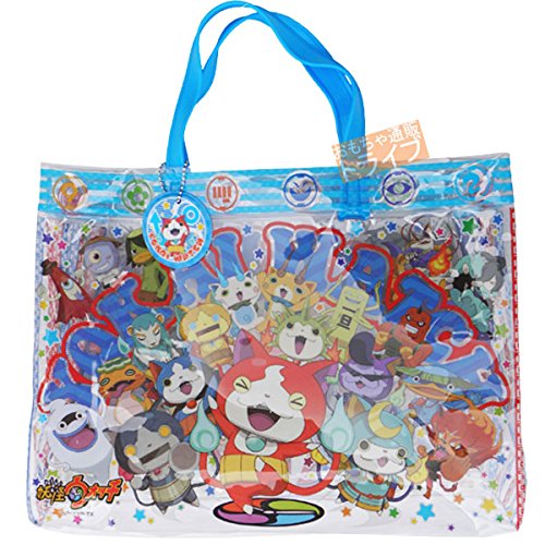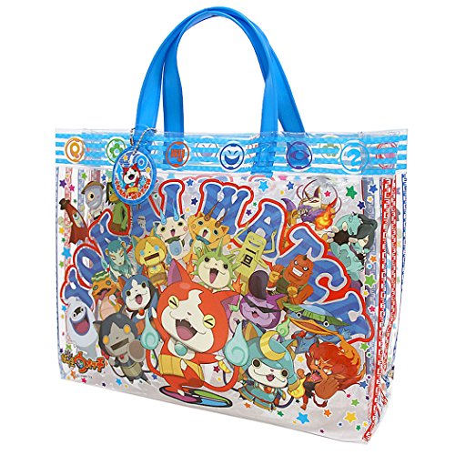 プールや海水浴に最適のバッグです。 両面とも同じ柄です。 サイズ:横 約 34cm 縦 約 26cm(取手含まず) 底面 約 10cm 取手の高さ 約 10cm 素材:PVC  対象: 男女兼用 名前ホルダー付き