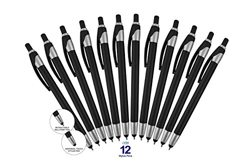 12 Pack Black Stylus with Ball Point Pen for iPad Mini, iPad 2/3, new iPad, iPhone 5 4S 4 3GS, iPod Touch, Motorola Xoom, Xyboard, Droid, Samsung Galaxy Asus (12 Pack Black)