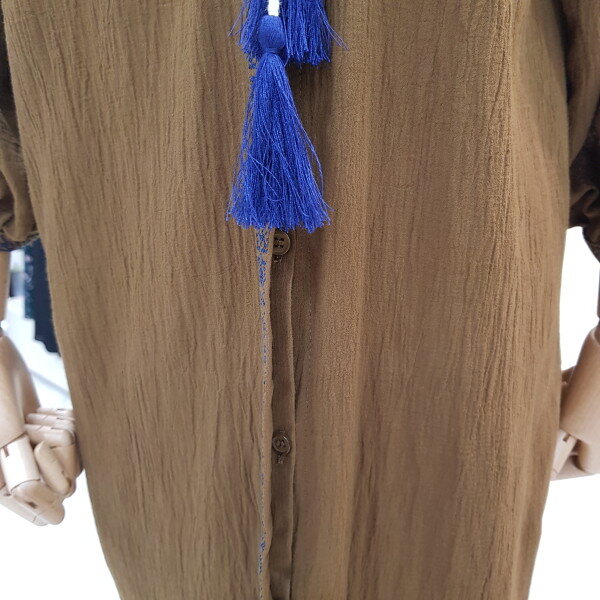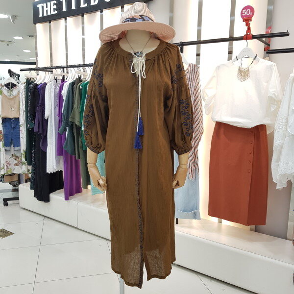 로브겸,원피스로 착용할수있는 보헤미안 에스닉풍의 원피스예요.에스닉무드의 시원시원한 테슬디자인, 디테일한 자수로 더욱 퀄리티있게 보이게 해주네용^^셔츠형태의 앞단추가 쪼로록 달려 고상하면서도 멋스럽고 묘한 에스닉의 매력을 느끼게 해주는 원피스네요~~^^