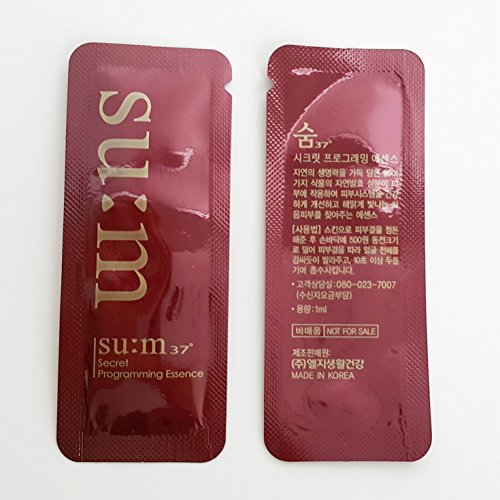 -. Binding : Misc. -. Brand : Su:m 37 -. EAN : 8801051609011 -. Feature : The essence containing the fermented ingredients of 80 kinds of plants makes your skin healthier and brighter. / Absorbs deeper to give a brighter and growing skin. / How to Use : After toner, apply right amount and tap for more than 10 second to let it absorb. -. Label : lg cosmetics -. Manufacturer : lg cosmetics -. ProductGroup : Beauty -. ProductTypeName : BEAUTY -. Publisher : lg cosmetics -. Studio : lg cosmetics -. Title : 30 X Lg Sum:37 Secret Programming Essence 1ml. Super Saver Than Normal Size