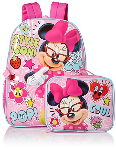 Backpack features minnie mouse in her glasses on a fun background. Lunch kit detaches and is insulated to keep food and beverages cold or warm.