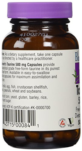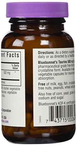Bluebonnet Taurine 500 mg Vitamin Capsules, 50 Count