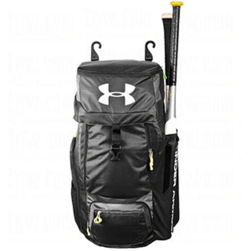 -. Binding : Misc. -. Brand : Under Armour -. Color : Black -. Department : unisex-adult -. EAN : 0029343029332 -. Feature : Designed for the serious player looking for a roller bag alternative / Securely holds up to three bats / Long bat sleeves protect bat barrels / Holds up to a size 13 pair of high top spikes / Water resistant STORM treatment -. IsAutographed : 0 -. IsMemorabilia : 0 -. Label : Under Armour -. Manufacturer : Under Armour -. MPN : UASB-DHBP -. PackageQuantity : 1 -. PartNumber : UASB-DHBP -. ProductGroup : Sports -. ProductTypeName : SPORTING_GOODS -. Publisher : Under Armour -. Size : 13'' X 10" X 29" -. Studio : Under Armour -. Title : Under Armour Double Header Bat Pack , Black -. UPC : 029343029332
