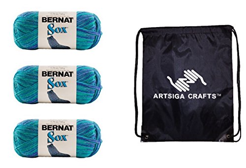 - Bundle includes 3-Pack Bernat Sox Yarn Surfs Up 166050-50008 with 1 Artsiga Crafts Project Bag