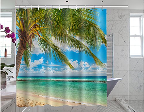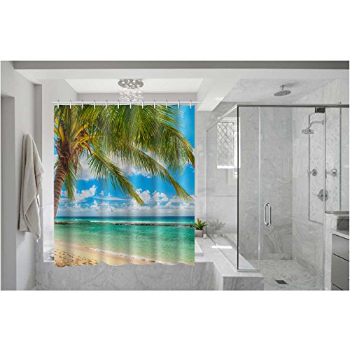 Palm tree Theme Print, Summer Beach Blue Sea Palm Tree Waterproof Polyester Fabric Bathroom Shower Curtain with 66"(w) x 72"(h)- (Shower Rings Included)