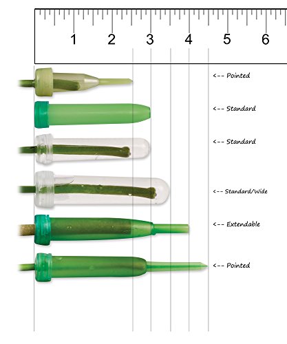 Single Stem Water Pick, available in a variety of sizes and styles, in either clear or green translucent, comes in packs of 100 pcs per bag. Standard= is a regular round base tube. Extendable Style= Takes in a floral pick at the bottom so water tube can be further extended. Pointed Style= Tube has its own pick at the bottom which can be sticked directly into foam or soil etc. Size by Inches mentioned includes the extension (whether Extendable or Pointed).