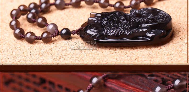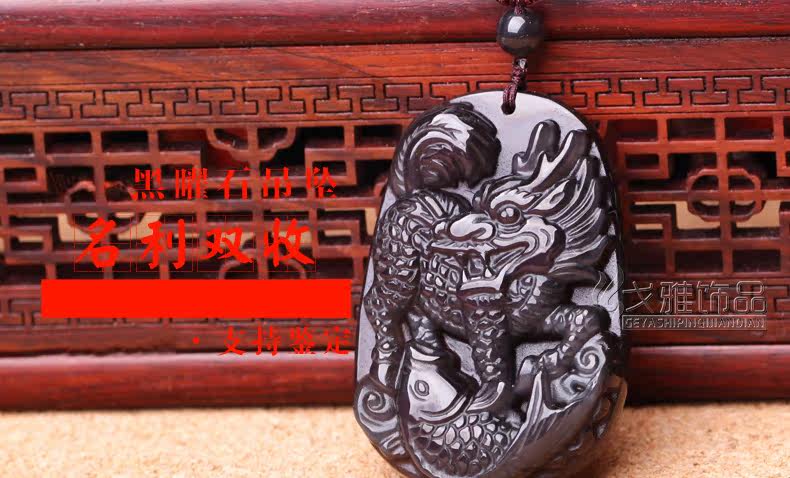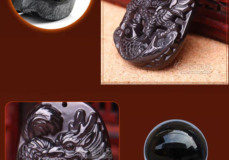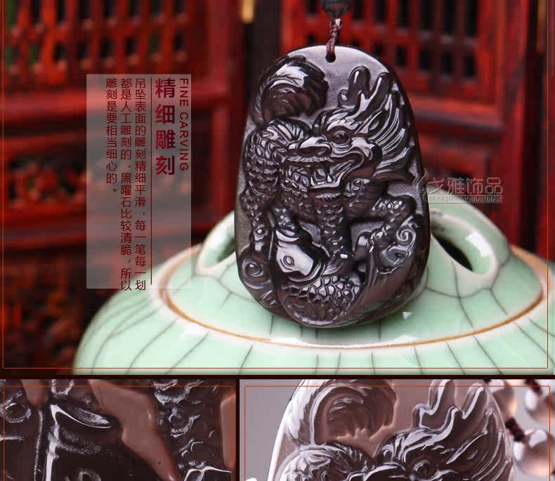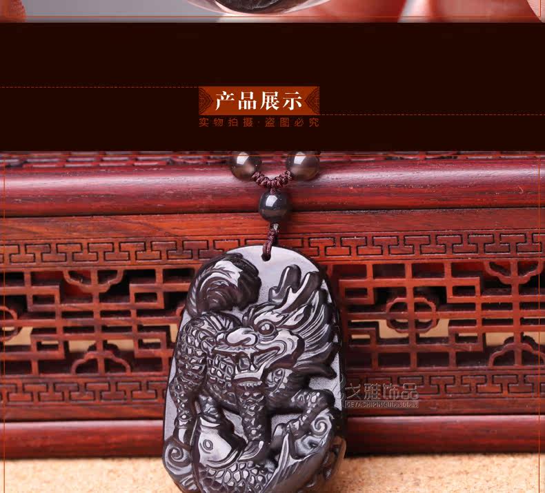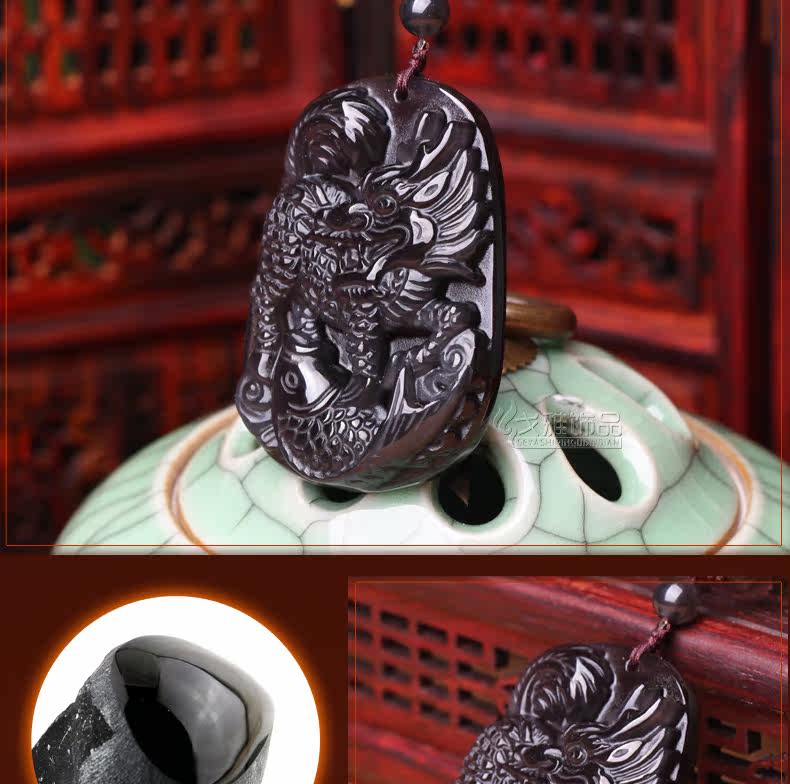 冰种彩眼黑曜石吊坠 生肖龙本命年生肖吉祥物名利双收饰品