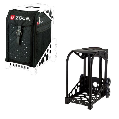 Binding : Apparel Product Description The Frame: - Dimensions: 18" Tall x 14" Long x 10" Wide (12" wide with wheels) - Light and strong 3003-H14 aluminum alloy - Telescoping Handle constructed of tensile strength aircraft aluminum - Handle telescopes to a height of 38" - Safely rated at a 300 lb. capacity - Holes in the frame make it lighter while not compromising structural integrity About The Bag: ZUCA makes the bags from many fabrics but the basic bags in black red and navy are premium 600 Denier Polyester that have been coated on the inside with polyurethane to improve water resistance and seam strength. The bag is water resistant to a point, but should not be left out in a steady rain with stuff inside that should not get wet. ZUCA uses a very strong type of Velcro (it comes in different adhesive levels) so that the bag is unlikely to come undone due to the interior load pulling on it. About The Wheels: The wheels are 4" polyurethane formulated to absorb a great deal of the shock of hitting a curb, and to make the wheel silent over rough surfaces. ZUCA makes their own wheels so that they can control the quality of the urethane in the wheel. The flashing mechanism uses no batteries and is powered by a small generator or "magneto" inside the wheel. The magneto rotor is in the wheel and contains a coil of wire wrapped around steel plates. The wire is connected to the LED's, and as the plates pass the magnets in the stationary armature, a small burst of electricity is generated and the LED flashes. The faster you go, the brighter it gets. And what's up with the upper wheels? They are there to make curbs and stairs easy and eliminate the BANG-SCRAPE sound. They don't light up, so if you want to be stealth you can switch uppers for lowers. Our Package also includes the tensile strength aircraft aluminum steel frame. Plus as a Bonus receive our Universal Ipod and MP3 Deluxe Gift Set. 0