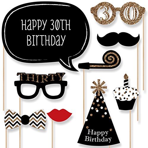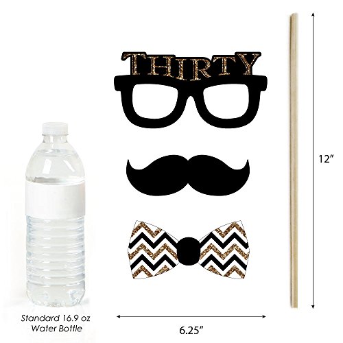 HIGH-QUALITY PARTY SUPPLIES: Adult 30th Birthday - Gold photo booth props are professionally printed on thick cardstock paper. They will arrive cut out and ready to assemble with the included wooden dowel sticks and adhesives. Adult 30th Birthday - Gold photo booth props use a No-Mess Glitter Print: Our photo booth props are designed with a printed image of glitter, eliminating glitter flake while maximizing bling effect!
