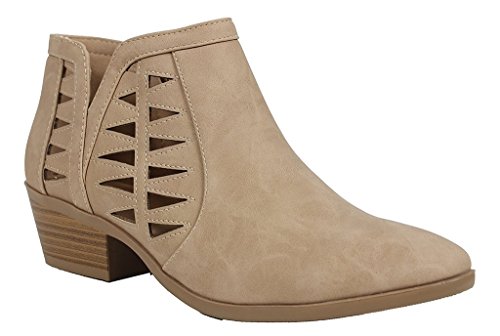 -. Title : Soda Women's Perforated Cut Out Stacked Block Heel Ankle Booties