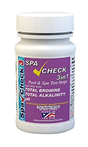 -. Feature : Total Bromine: 0, 1, 3, 6, 9, 12, 20 ppm / Total Alkalinity: 0, 40, 80, 120, 180, 240, 360 ppm / PH: 6.0, 6.4, 7.2, 7.6, 8.2, 9.0 / Simple 20 second test / Bottle of 50 test strips