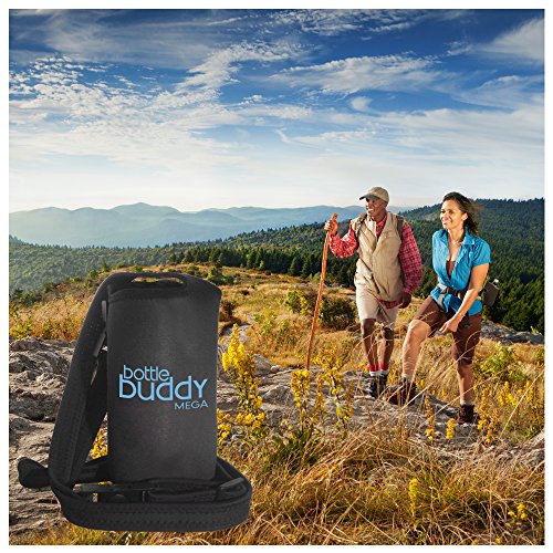 Neoprene Insulated Water Bottle Holder, 56” Adjustable Detachable Strap, Use as a Shoulder Sling or Hand Carrier, Bottle Buddy Mega fits 40oz Hydro Flask Type Bottles