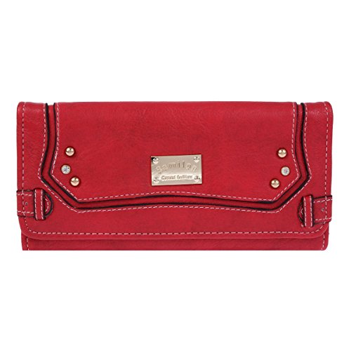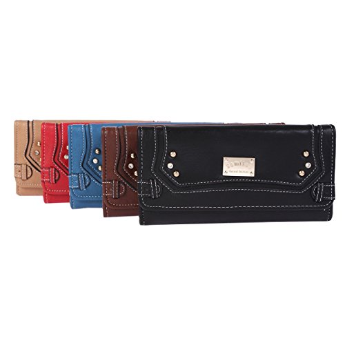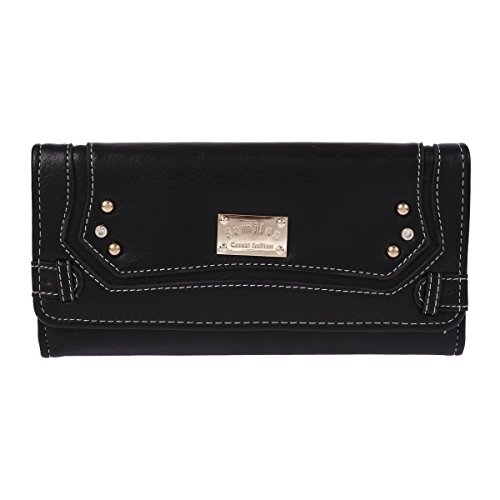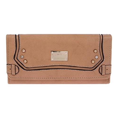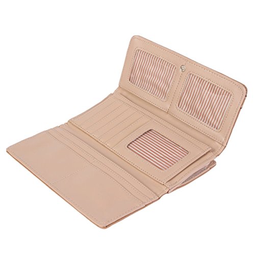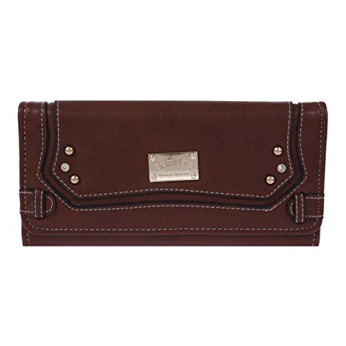 Damara Womens Classic Long Trifold Zipper Purse,Coffee