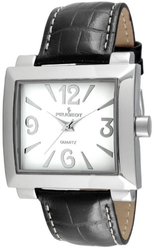 -. Title : Peugeot Women's 706BK Silver-Tone Black Leather Strap Watch