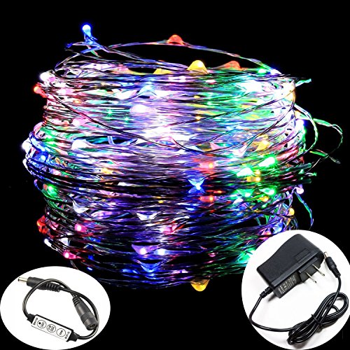 JstoneTech 10meters 100LEDs Dimmable LED String Lights with wire controller For Seasonal Decorative Gardens Christmas Holiday Wedding Parties Home Bedroom -Colours (100 leds 33 ft)