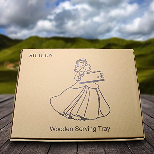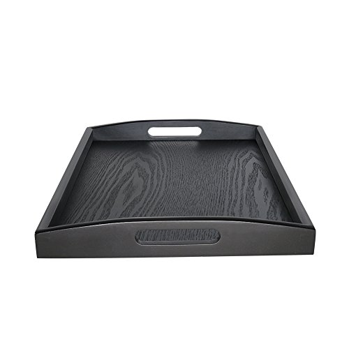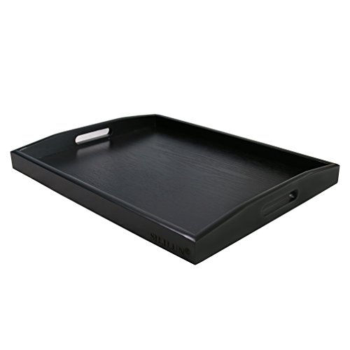 SILILUN Serving Tray Large Wood Tray Black Wooden Platter With Handle Easy Arrangement Breakfast Food Tray 17.77 x 13.72 x 1.78"