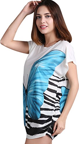 -. Feature : Buterfly style size:length 28", bust 43",shoulder 23" / Flower style size: length 29", bust 39", waist 44", / Soft fabric, light weight / Rounded neckline and short batwing sleeve design / You can wear this tunic top alone or pair with leggings/jeggings/shorts for a stylish look