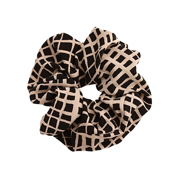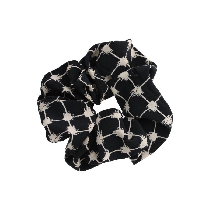 ? [밴《데누》] VINGTAINE 베이직 프린트무늬 슈슈 시폰 리본무늬 격자무늬 헤어 악세사리 헤어 고무 HS-82-BK 3.블랙