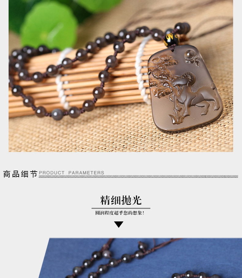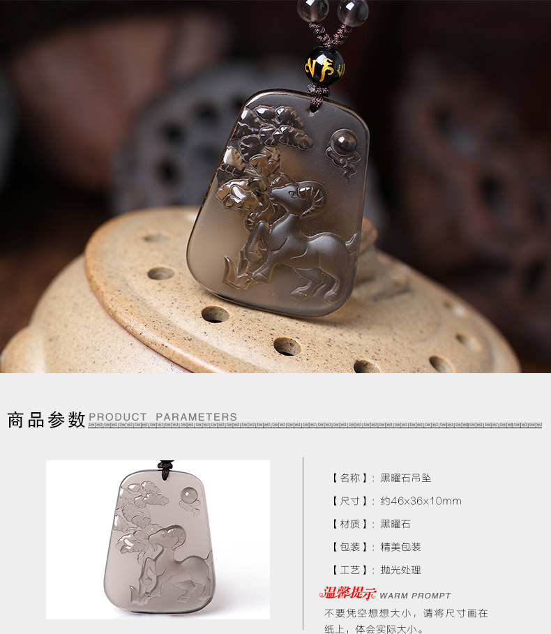 开光吉羊添禄属猪开运吉祥物黑曜石项坠