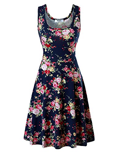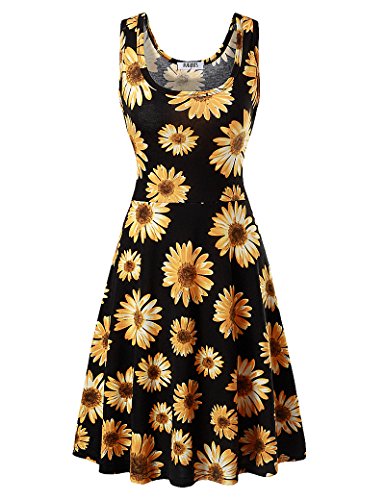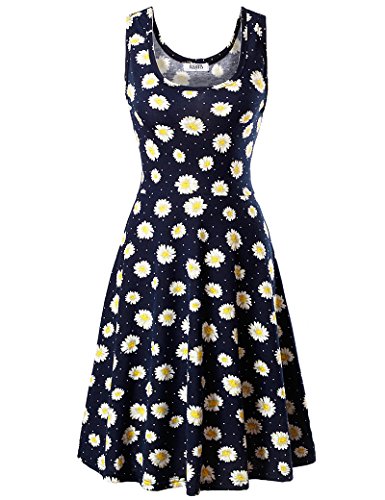 Fuerfits Women Summer Beach Casual Flared Midi Tank Dress