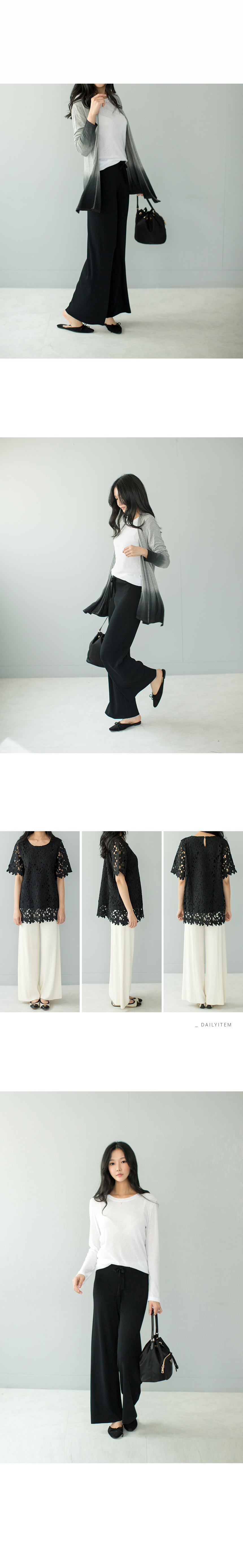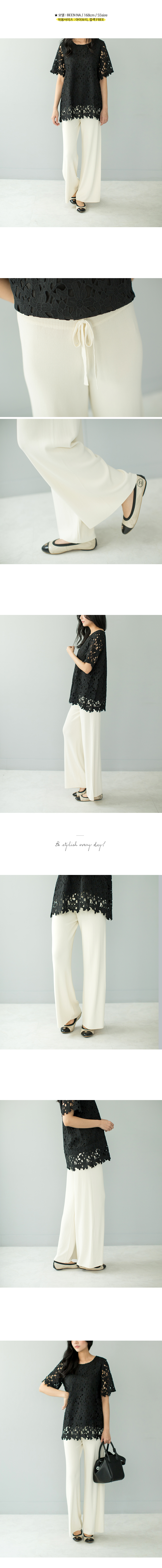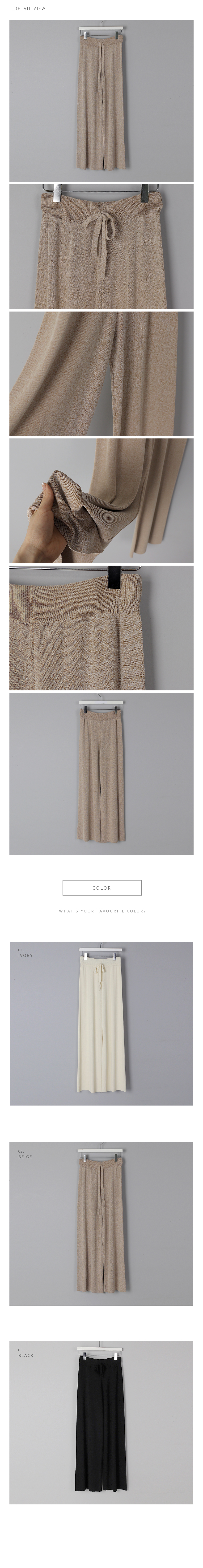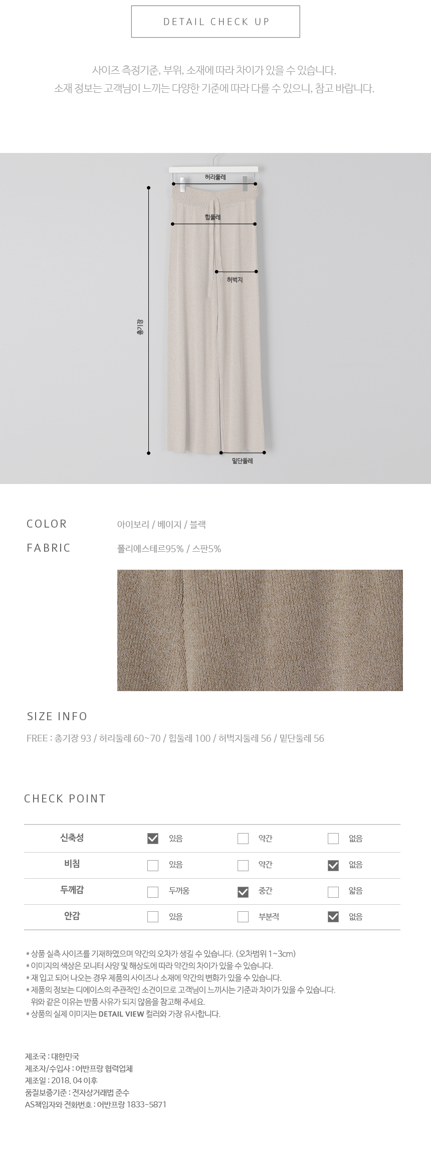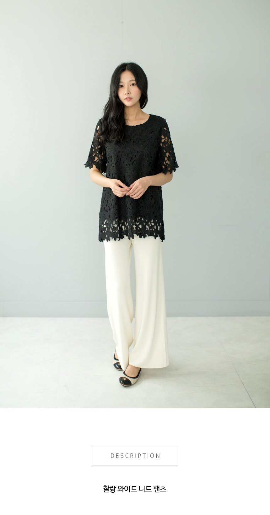 가볍게 착용하기 좋은 니트 와이드팬츠에요통이 과하게 넓지않은 적당한 와이드핏으로떨어져서 부담스럽지 않구요찰랑거리는 핏감이 시원하게 착용하실수 있어요편하게 입어지면서도 스타일리쉬해 보이는 아이템으로허리밴딩으로 편안한 착용감을 드려요색상은 아이보리,베이지,블랙사이즈는 FREE 44~66▼ 관련상품 : 꽃 아일렛 블라우스프렌치 라운드 티셔츠그라데이션 찰랑 가디건