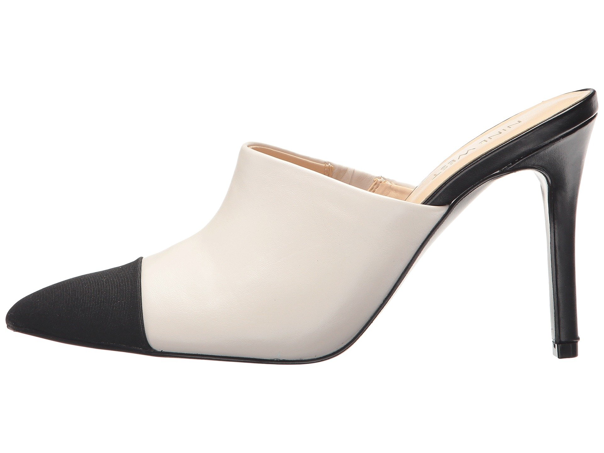 | Product Information SKU: #9014040Complement your polished look with the Nine West? Nestorie mule.Leather upper.Slip-on design.Pointed, cap toe.Man-made lining.Lightly padded footbed.Wrapped heel.Man-made outsole.Imported.Product measurements were taken using size 7.5, width M. Please note that measurements may vary by size.Weight of footwear is based on a single item, not a pair.Measurements: Heel Height: 3 3?4 in Weight: 9 oz |