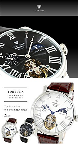 FORTUNA(단점,흠《나》) [FORTUNA]단점,흠《나》 손목시계 태양과 월의 기계식 시계 자동 감기/태엽 스켈리턴 사양/산&문 맨즈 손목시계