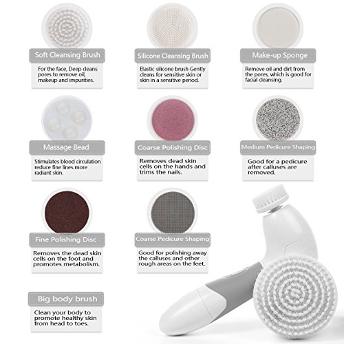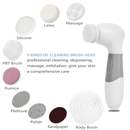 CNAIER 9 in 1 Waterproof Electric Face and Body Cleansing Brush Set with Exfoliating Facial Brush - Best Advanced Microdermabrasion Scrub System