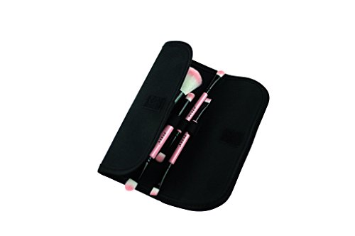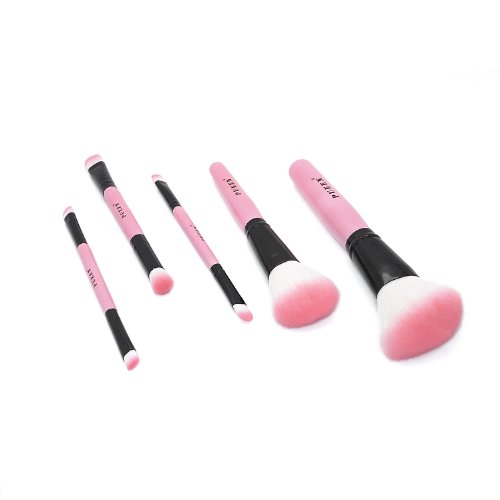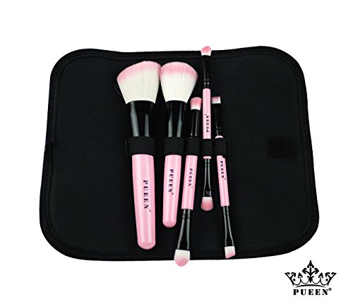PUEEN 5 Piece Pink Synthetic Hair Travel Makeup Brush Set in Travel Bag - Includes 8 Different Brushes-BH000008