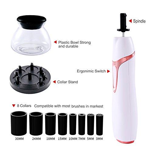 - DURABLE MATERIAL: The splash-proof bowl of the makeup brushes cleaner is made of advanced eco-friendly plastic, more durable and uneasy to be broken than other glass bowls. The unique design prevents water splashing out during cleaning the makeup brushes.