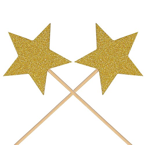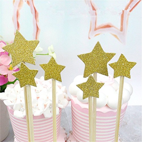 Package includes 48 glitter gold star cupcake picks (single side) of two different sizes, 16 big star cupcake picks and 32 small star cupcake picks.