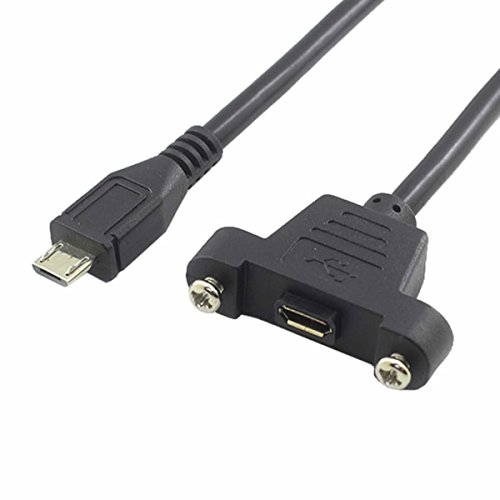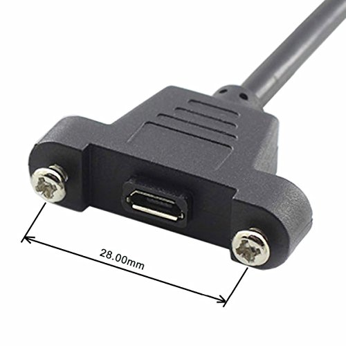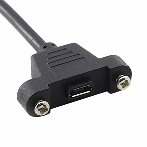 HOTL 1.6 Feet Micro USB Male to Micro USB Female Extension Panel Mount Type Cable with Screws, Data+Charge ,Black