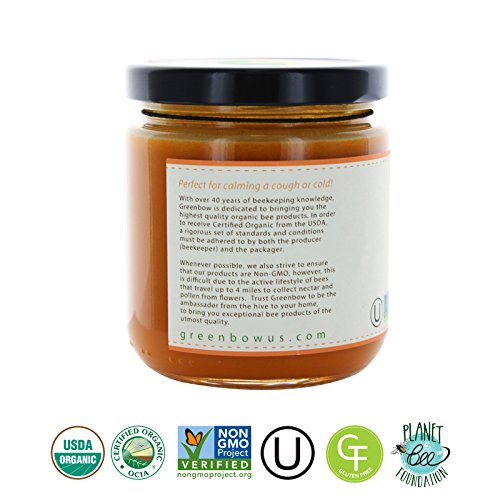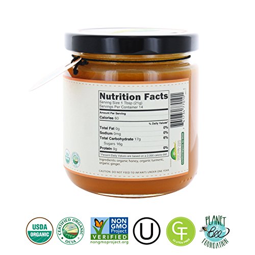 -. Feature : Greenbow Non-GMO USDA Organic Honey with Turmeric / Turmeric Honey & 100% Organic, the highest quality organic bee products / All natural, Gluten Free, Kosher Certified, No artificial colors, flavors, or preservatives / Perfect for tea, reduce cough, on top of toast, pancakes, waffles, and over ice cream / Certified organic from USDA, a rigorous set of standards and conditions must be adhered to by both producer and the packager