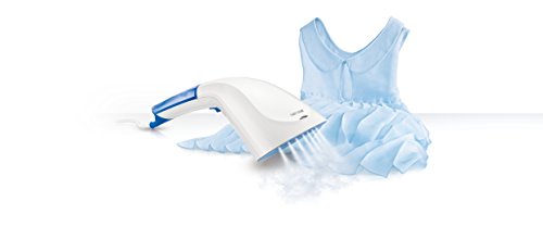 -. Title : Philips GC312/65 Steam & Go Dampfbürste (mit hitzebeständiger Aufbewahrungsbox, 1000W, Bürstenaufsatz) Farbe: Weiß/blau, Box in rot/lila/orange