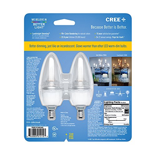 Cree 40W Equivalent Soft White Dimmable Clear B11 LED Candelabra Light Bulb (2-Pack)